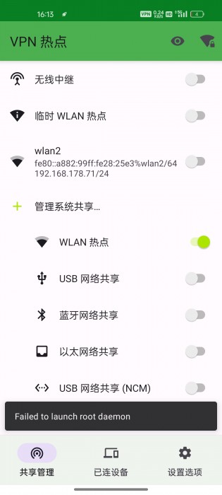 为什么点*共享wlan2这个按钮会提示失败